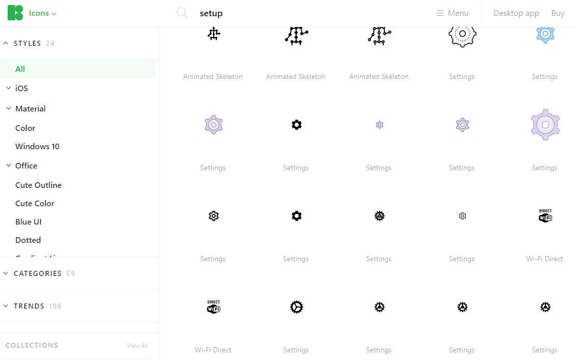 환경설정에 쓸 아이콘을 검색 해보겠습니다. 검색어는 SETUP을 해볼게요.