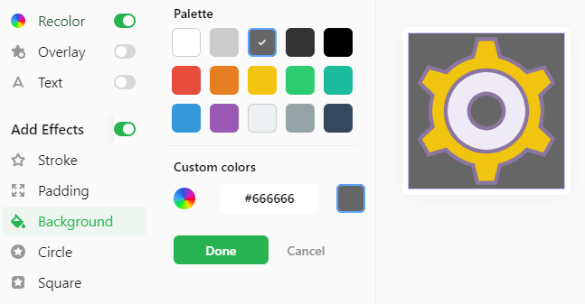 또한 좌측의 Recolor / Overlay / Text 등으로 기본 이미지의 형태도 변경할 수 있습니다. (만져보면 되죠!)