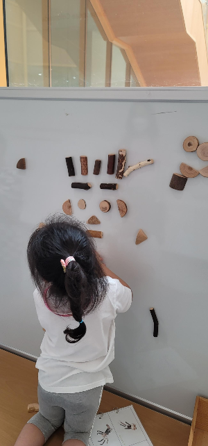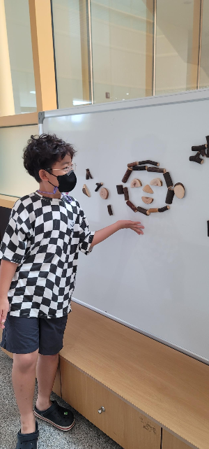 나무를 이용한 자석보드가 있길래 얼굴을 만들어 보았는데. (흠..)