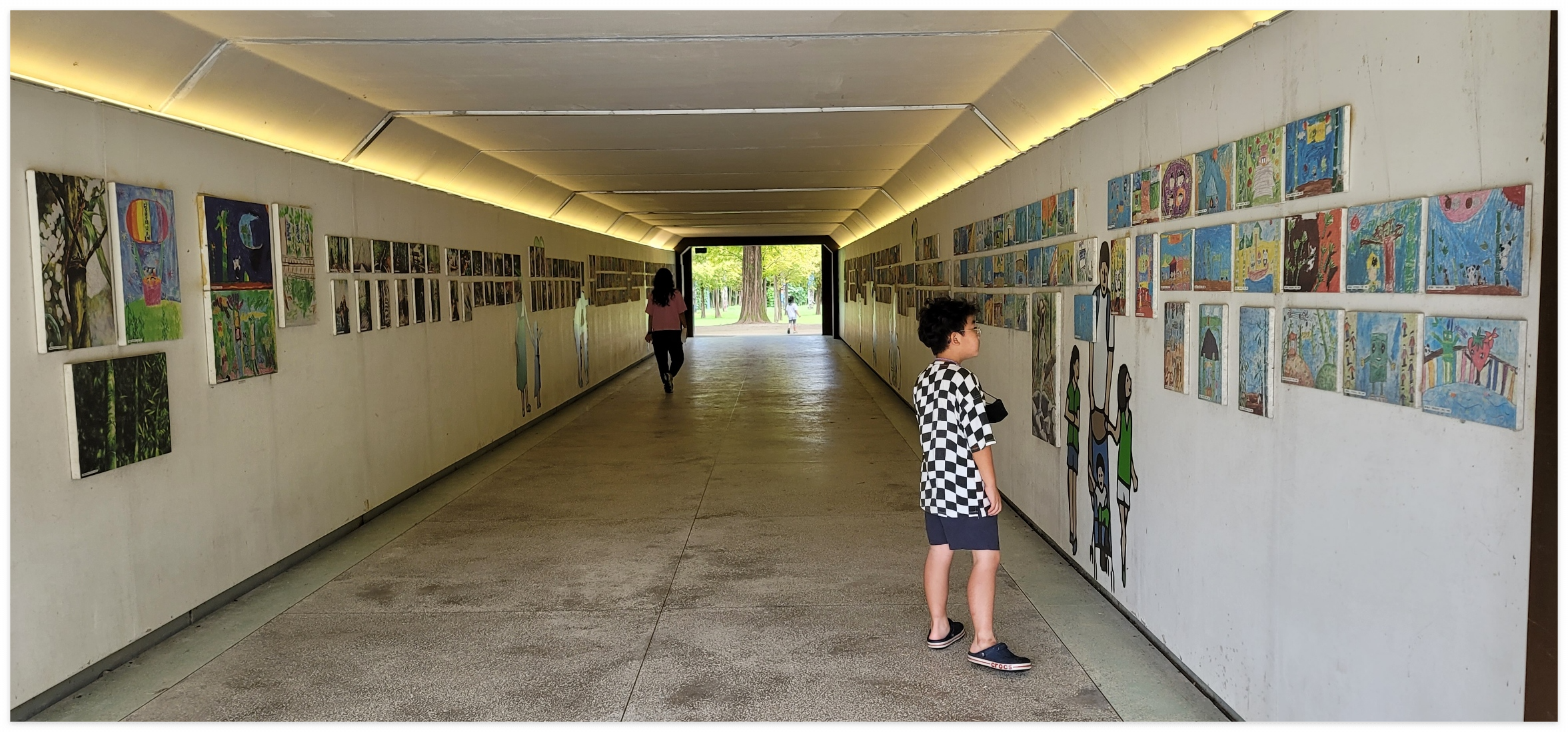 메타길을 다니다보면 아래처럼 굴다리 미술관이 있는데 그곳을 지나면 공룡 모형과 놀이터가 있으니 아이들과 왔다면 한번 그림도 감상하면서 지나가 보세요!
